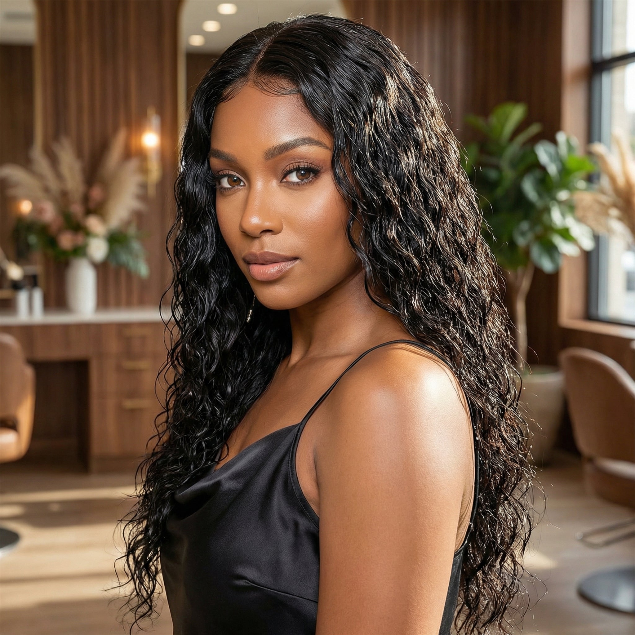 14″ Water Wave Bob Wig – 13x4 Lace Frontal Human Hair, Natural Black