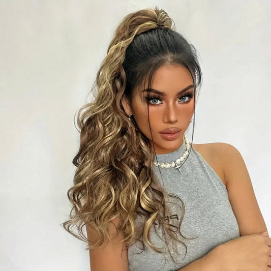 100% Human Hair Curly Lace Front Wig – 16″ Bouncy Curls, #4/27 Highlight
