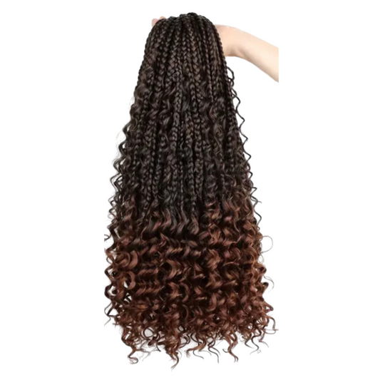 Long Boho Box Braids with Loose Curls – 18" Pre-Looped Crochet Hair, #T30