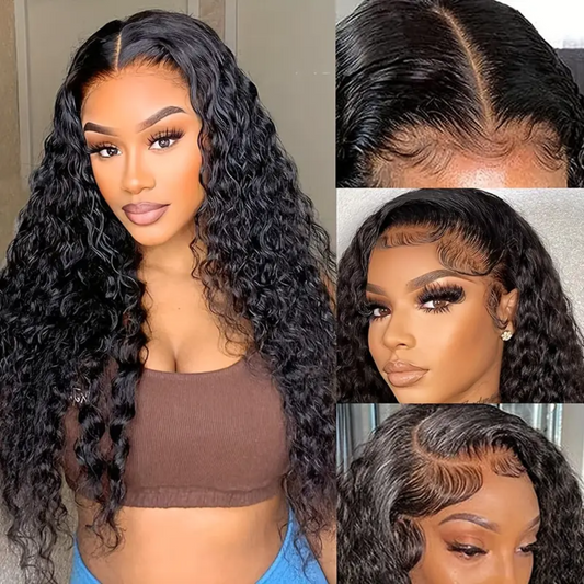 Natural Black Water Wave Human Hair Wig – Long 30″, 13×4 Lace Front, High Density