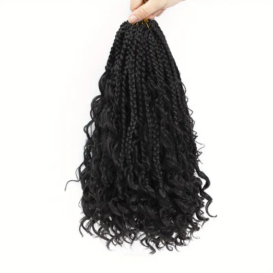 Long Boho Box Braids with Loose Curls – 18" Pre-Looped Crochet Hair, #TBUG 3-Pack