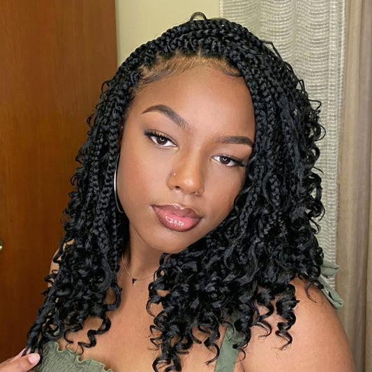 Short Boho Box Braids with Curly Ends – 12 Inch Pre-Looped Crochet Hair