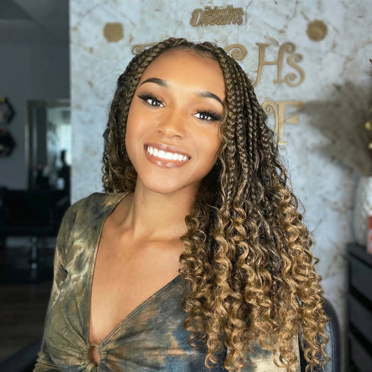 Long Boho Box Braids with Loose Curls – 18" Pre-Looped Crochet Hair, #T30