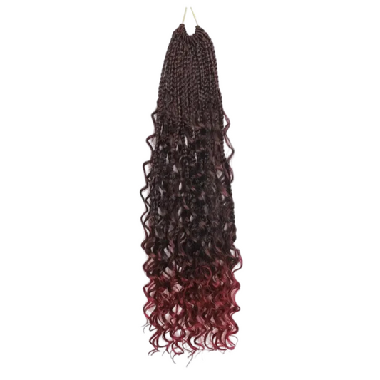 Long Boho Box Braids with Loose Curls – 18" Pre-Looped Crochet Hair, #TBUG