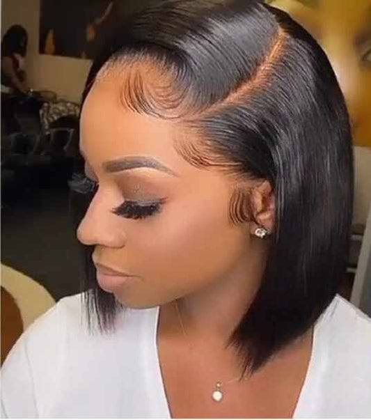 Straight Bob Wig – 13x4 Lace Front, 100% Human Hair, 12 Inches, Natural Black