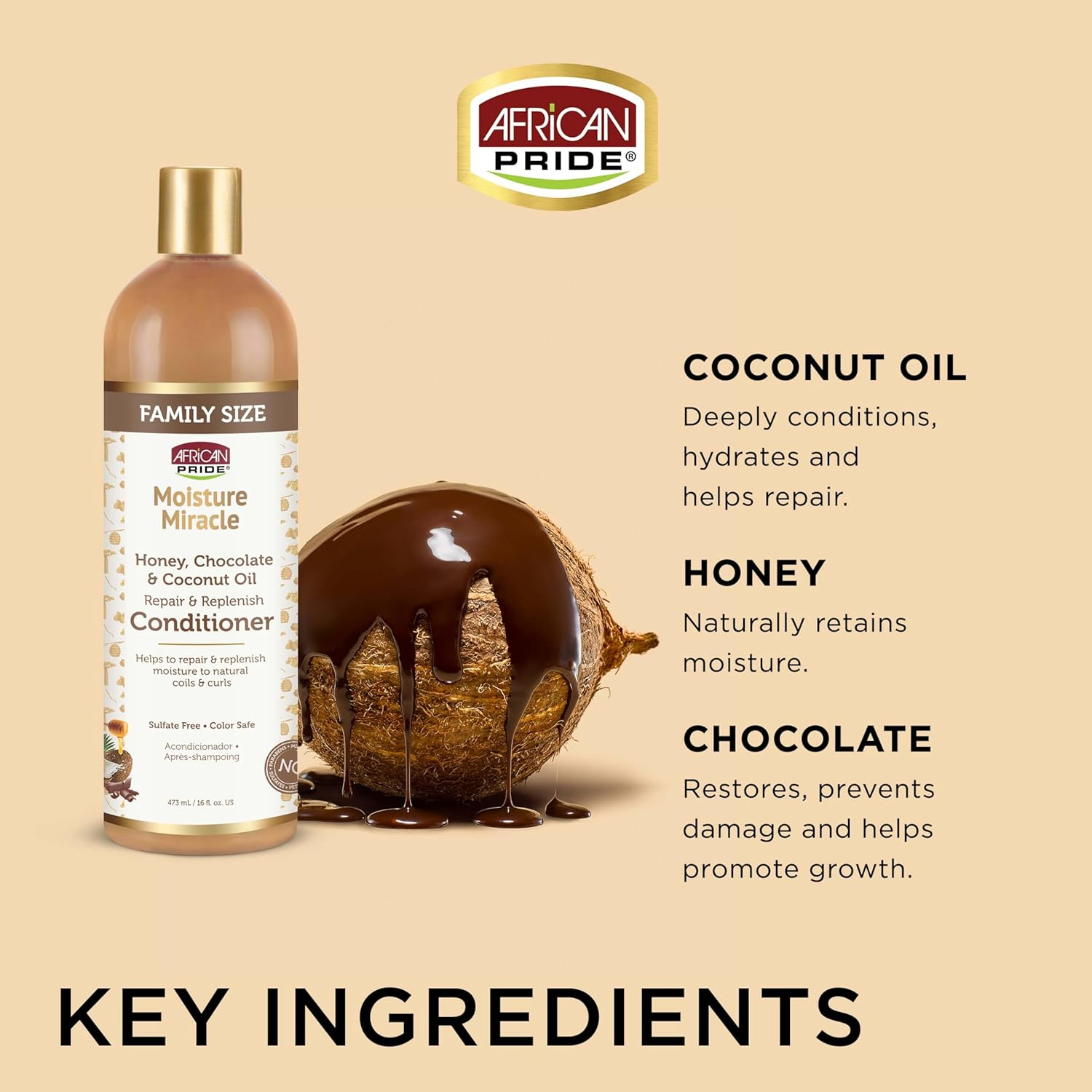 African Pride – Après-shampooing Miracle d'Hydratation au Miel, Chocolat et Huile de Noix de Coco, 16 fl oz